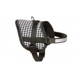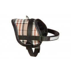 Ce harnais pour chien existe en 5 coloris, rose, noir, écossais, anglais ou noir et blanc.